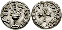 Half Shekel coin issued by the Jewish rebels in 67–68 CE Letters are in Paleo-Hebrew.
